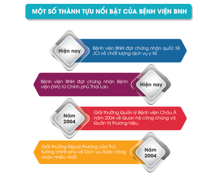 Là một trong những bệnh viện lâu đời nhất của Thái Lan, thương hiệu BNH đã được Chứng nhận HA từ chính phủ Thái Lan và Chứng nhận quốc tế JCI. Nơi đây quy tụ đội ngũ chuyên gia và y bác sĩ đến từ các trường y khoa nổi tiếng ở Thái Lan và thế giới.