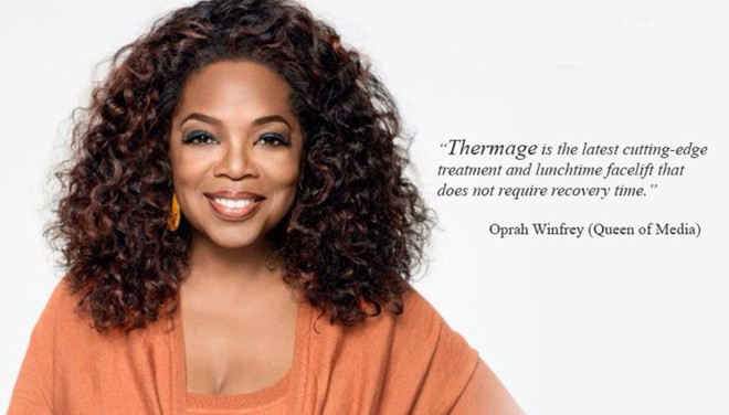 Nữ hoàng của các talk show, bà trùm giới truyền thông Oprah Winfrey sinh năm 1954, tức là năm nay bà đã bước sang tuổi 64. Nhưng nếu chỉ nhìn vào vẻ bề ngoài, thì khó ai đoán được tuổi của bà. Vẻ bề ngoài tràn đầy sinh lực và làn da căng mịn, cơ mặt săn chắc khiến bà trẻ hơn tuổi rất nhiều. Và nữ MC có chung bí quyết giữ gìn nét thanh xuân với minh tinh Gwyneth Paltrow là công nghệ trẻ hóa, tái sinh collagen Thermage.