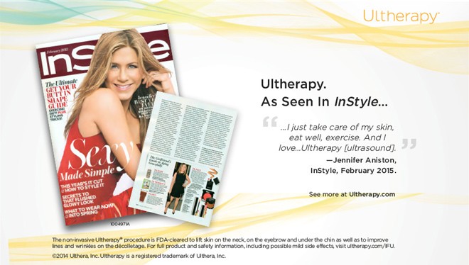 Dù đã xấp xỉ ngũ tuần, nhưng minh tinh Jennifer Aniston chưa bao giờ vắng mặt trong danh sách những người đẹp nhất hành tinh. Người đẹp tiết lộ, ngoài việc ưu ái sử dụng các sản phẩm chăm sóc nhan sắc từ thiên nhiên, nữ diễn viên còn cực yêu thích Ultherapy – công nghệ trẻ hóa, căng da đỉnh hàng đầu thế giới.